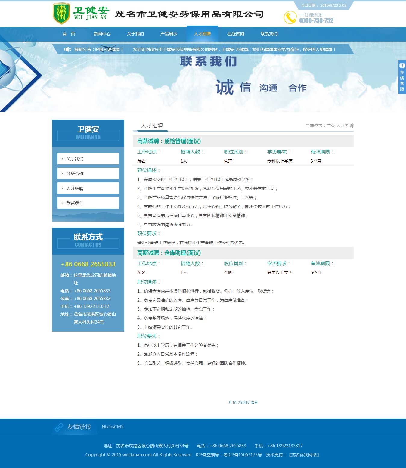 訪問(wèn):茂名衛(wèi)健安勞保